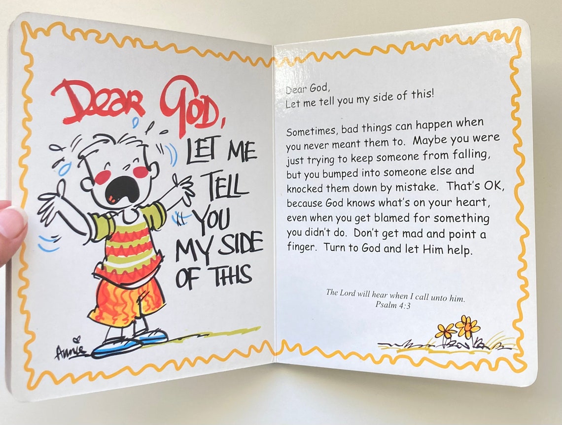 | A Sneek peek into the Dear God™, It's Me Again (Dear God Kids Series) book by Annie Fitzgerald, 12 pages, Board Book. Flying Frog Publishing. First published February 6, 2003. |