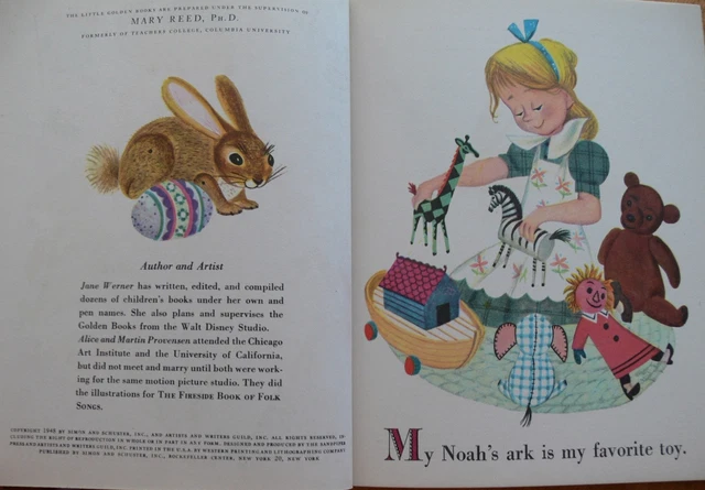 Story by Jane Werner, pictures by Alice and Martin Provensen. "B" edition, Brown Back1948 copyright, Simon and Schuster |